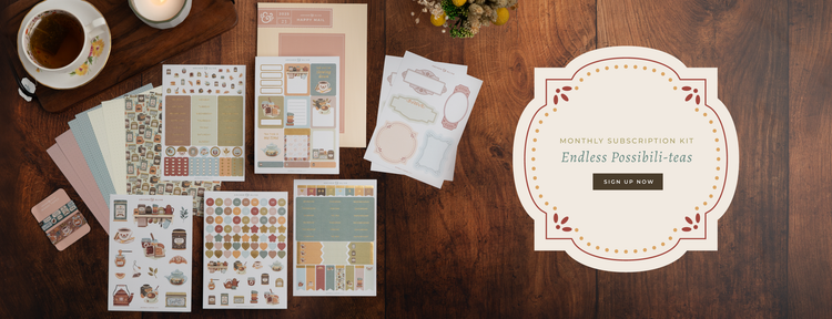 A monthly kit is a great way to add some fun and flair throughout the pages of your dot grid notebook. You'll always find them filled with themed stickers, colorful papers, tools, and more!