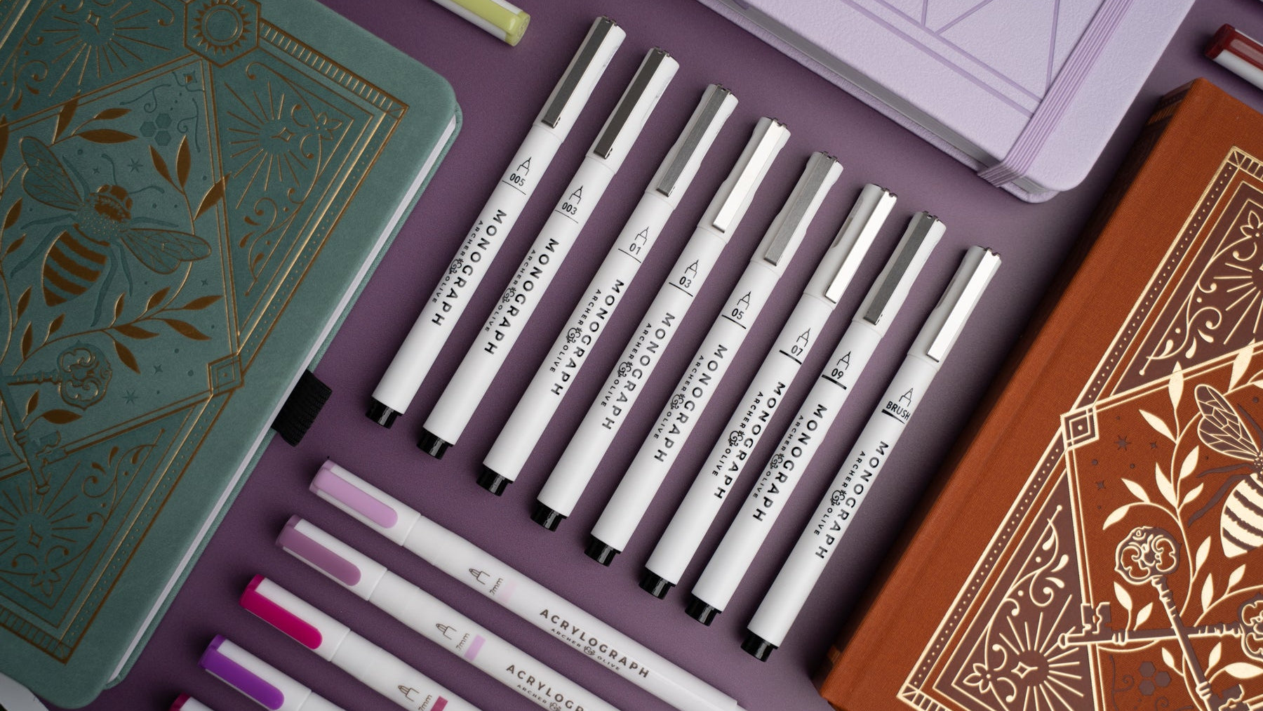 Our thoughtfully curated pen collections pair cohesive color stories with essential everyday tools. Alongside our classic pens in coordinated hues, our Monograph fineliners in classic black deliver clean, precise lines for writing, journaling, and sketching. Complete with ballpoint pens and mechanical pencils, each set is designed for consistency, function, and ease